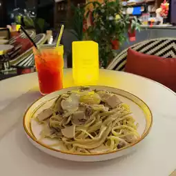 I decided to try their truffle pasta, and it did not disappoint. The creamy sauce and earthy truffle flavor were just perfect, making every bite satisfying. To complement the meal, I ordered a refreshing drink that added a nice touch to the overall experience.