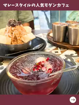 This trendy cafe, focusing mainly on Malaysian cuisine, is perfect for travelers to Malaysia. They offer unique menus such as a coffee tasting set featuring coffees from five Malaysian states, a bread set, and a 3-in-1 cup that lets you enjoy three different drinks at once—highly recommended for those wanting a slightly different Malaysian cafe experience.