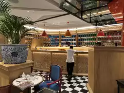 When you step into Bacha Coffee located in the Suria KLCC shopping mall at the Petronas Twin Towers in Kuala Lumpur, you are immediately captivated by its elegant and cozy atmosphere. This café is renowned for its unique Moroccan-style decor, with magnificent lighting and exquisite tiled floors, creating an exotic ambiance.
