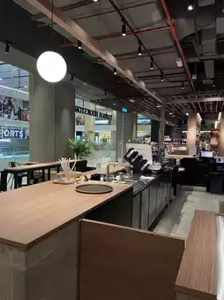The ambiance is tranquil and inviting, making it an ideal spot to unwind with a good read. The in-store café adds to the experience, allowing visitors to enjoy a cup of coffee while browsing or simply soaking in the serene atmosphere. The thoughtful layout, warm lighting, and elegant wooden interiors create a refined yet cozy space, perfect for casual readers and serious bookworms alike.