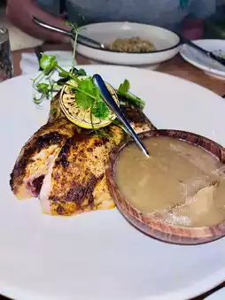 I ordered their Bottarga Spaghetti, char-grilled pineapple chicken, rosemary focaccia. For drinks, I ordered Boco Blizz and Bamboo coolers. This is a very cool chilling restaurant tucked in greens worth visiting.