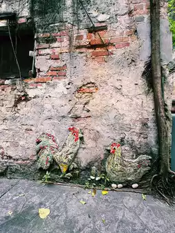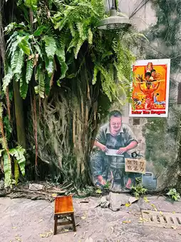 Step into the nostalgic charm of Kwai Chai Hong, where murals bring old Chinatown to life! A couple sits on the iconic red bridge, lost in time, while the Crouching Tiger lurks with quiet intensity. The scene of 磨菜刀 (sharpening the cleaver) adds an old-world touch, and a mother hen guards her eggs in a playful nod to heritage. Every mural tells a story—each corner a picture-perfect moment!