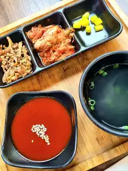 The banchan (side dishes) came in a tiny portion. We didn’t realize they were refillable until days later !