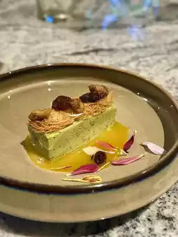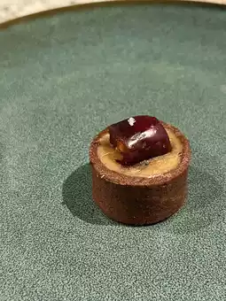 • Kurma Krunch – A unique take on a traditional favorite, this dish featured a kurma (date) compote nestled in a peanut butter chocolate tart, offering a rich and indulgent start to the meal.