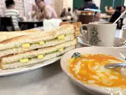 When you come to Kuala Lumpur, you must try Ho Kow Hainan Tea Shop’s famous half-boiled eggs with kaya toast. Coffee and Hainan tea are a must-order, but you can choose to take one cup to go and enjoy it while walking. I thought arriving at 7 AM would mean easy seating, but it was already packed with tourists. They also sell Ho Kow Hainan tea bags inside, but the price is a bit high. I bought two packs, each about 24 MYR, roughly between 175-180 TWD.