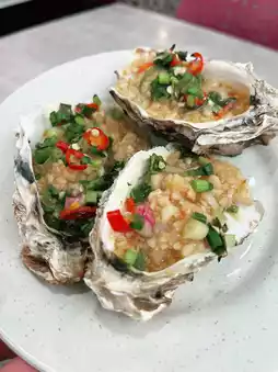 One of the must-try items is their famous baked oysters, which are grilled to perfection with a delicious blend of seasonings, making them a crowd favorite. The combination of hearty noodles and succulent seafood creates a truly satisfying dining experience.