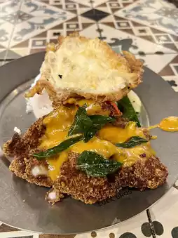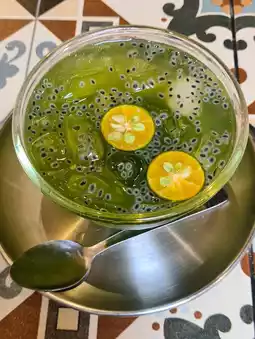 The restaurant is decorated in a vintage style and is located in the Chinatown area of Kuala Lumpur. The location is convenient. Their Nasi Lemak is a fusion style, which is very delicious for first-timers. The chili paste and curry paste are not too strong in smell. They also have other dishes. We like the fried chicken topped with salted egg sauce. Their famous dessert is Malaysian cendol, a longan dessert floating in pandan water mixed with fresh calamansi, which is very refreshing.