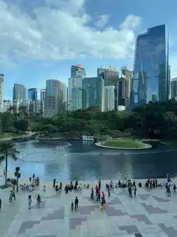 At the base, there’s a luxury shopping mall (Suria KLCC) and a huge urban park with walking trails, a fountain show, and green spaces — great for combining a cultural visit with relaxation.