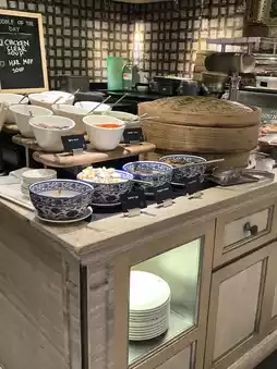 When you are seated, you can choose coffee or tea, which will be prepared for you. Meanwhile, feel free to get your favorite dishes. There is a wide variety of bread, and there are Japanese, Western, and Chinese booths where food is cooked right in front of you. Among them, egg dishes were especially popular.