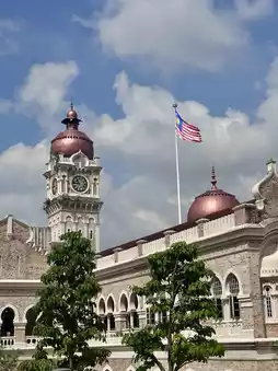 📍Merdeka Square: A walk from Jamek Mosque leads to Merdeka Square, a landmark area of Kuala Lumpur. The 100-meter-high flagpole stands tall, witnessing Malaysia’s independence history. Surrounding colonial-era buildings like Sultan Abdul Samad Building and Royal Selangor Club feature British-style clock towers and domes, telling stories of the past—perfect for photo ops and learning about the city’s history.