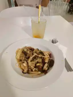 I ordered the mushrooms aglio olio and a refreshing yuzu sparkling drink. The pasta was flavorful with a nice garlicky kick, and the mushrooms were juicy and delicious. The yuzu drink paired so well—light and citrusy! Highly recommend this relaxing spot if you’re around Bukit Bintang.
