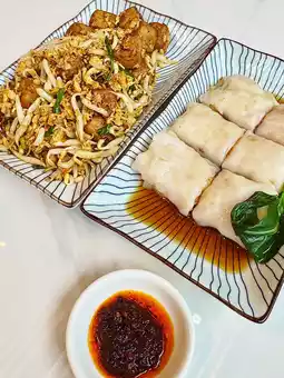 We tried their signature crispy prawn rice roll, and it was a standout — crispy on the outside, juicy inside, and bursting with flavor. The stir-fried radish cake was well-seasoned with that perfect wok hei, and both roasted and steamed chicken rice were cooked to perfection — tender, flavorful, and satisfying.