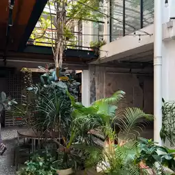 This charming space is home to independent studios, the cozy Riwayat bookstore, LOKL Café, and even a lush courtyard surrounded by greenery. The semi-open roof lets natural sunlight flood in—every corner feels thoughtfully designed and perfect for photography lovers.