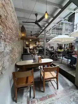 I recently visited Kafe Kleptokrat in KL, and was charmed by its tropical vibes and the stunning swimming pool right in the courtyard — perfect for photos and a relaxing escape from the city buzz. The ambiance is a beautiful blend of vintage and nature, with rustic walls and lush greenery all around.