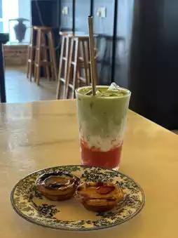 I dropped by recently and tried their famous Portuguese egg tart — seriously one of the best I’ve had. The crust was perfectly flaky and buttery, and the custard filling was creamy with just a hint of cinnamon. So good! I also had their strawberry matcha latte, which looked amazing and tasted just as good. The mix of earthy matcha with sweet strawberry was refreshing and not too heavy.