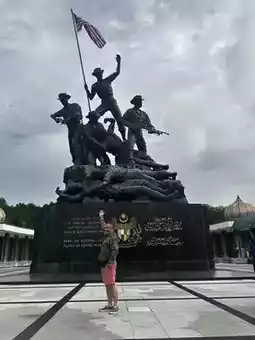 I took a Grab directly to our first stop—the National Monument located within Kuala Lumpur Lake Gardens. As soon as I got off, I was immediately struck by the massive bronze sculpture before me. It stands in the center of a fountain pool, shining with a bronze glow under the sunlight, solemn and dignified.
