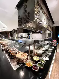 Guests are treated to an impressive spread featuring fresh seafood on ice, a luscious chocolate fountain, and live cooking stations with Japanese sushi and sashimi, aromatic Indian curries, Western roasts, and classic Malaysian local favourites.
