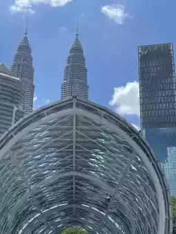 Saloma Link Bridge is considered one of the landmarks in KL because Malaysia has transformed a pedestrian bridge into a futuristic bridge that perfectly integrates artwork connecting the past and the future. The design features layered curves stacked together, looking modern and stylish, making photos beautiful from every angle, especially with the Petronas Twin Towers as the backdrop.