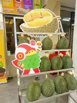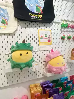 • Inside the shop you can enjoy fresh durian, desserts, drinks, snacks, plus durian-themed merchandise and claw machines, great for photos! ()