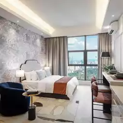 AMI Suites is a visual masterpiece—Art Deco meets futuristic minimalism. Located in Mont Kiara, this boutique residence is ideal for travelers seeking elegance in a quieter, upscale neighborhood. The building itself is iconic, with spiral staircases, reflective surfaces, and vibrant design throughout. Rooms are apartment-style and equipped with kitchenettes, making them great for longer stays. Highlights include the rooftop pool with stunning city views and a tranquil lobby area perfect for working or relaxing. Though slightly removed from the city center, it’s a stylish, spacious alternative to typical hotels and offers true boutique luxury.