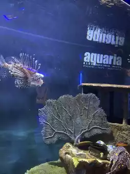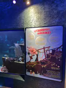 Deeper into Aquaria KLCC, we stumbled upon a sunken treasure β the enchanting Mataking Shipwreck exhibit. With its haunting lighting and deep-sea vibes, this zone felt like stepping into a forgotten piece of ocean history. Rusty wreck structures, soft sand, and glowing blues gave an eerie yet beautiful backdrop. The real star here? The magnificent lionfish β floating slowly with elegant, spiky fins that looked like royal fans. Itβs the kind of scene that makes you stop, stare, and wonder what secrets the ocean holds.