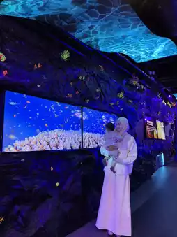 The best part? Itโs fully air-conditioned, making it super baby- and toddler-friendly. Raees stayed comfy in his stroller while we explored the ocean tunnels and colorful exhibits. Whether youโre visiting with family or just want a calm space to relax indoors, Aquaria ticks all the boxes.