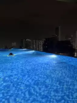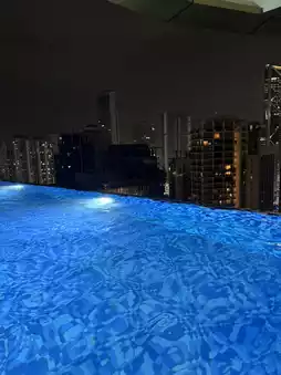 We were assigned a room on the 22nd floor. Upon entering, the wooden decor combined with sunlight streaming through the window ☀️ really gave off a vacation vibe 🏖️, lifting the mood 😀. The bed was a bit small but very comfortable. Upstairs, there is an infinity pool and a gym where many people swim while enjoying the night view 🌃. The atmosphere is very relaxing, and this will definitely be my hotel choice next time I visit Kuala Lumpur!