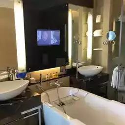 I am going to plan a trip back again soon. It is also easy to get to The Majestic Hotel KL. They provide a free hotel shuttle bus to pick up from KL Sentral. Just let the hotel know in advance and they will provide you their shuttle bus time table. Else, you can just grab over. Once you arrive at The Majestic Hotel, you will see that it is very grand and their hotel is white in colour. Once you enter the hotel, you will see a high ceiling with many orchid decorations. I will introduce their Junior Suite which has a similar bathroom/bathtub like St Regis Singapore. But of course, a bigger room with bathtub tv and at a better pricing compared to St Regis Singapore. It also comes with a mini living room and a four poster bed. It is very dreamy and best suitable for a romantic or solocation in KL.