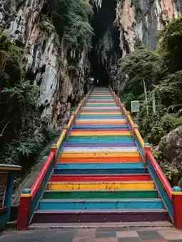 ✅ Batu Caves: Climb 272 colorful steps, wear shorts but bring a scarf to cover yourself (10 HKD rental at the entrance), the hilltop offers a panoramic view of Kuala Lumpur