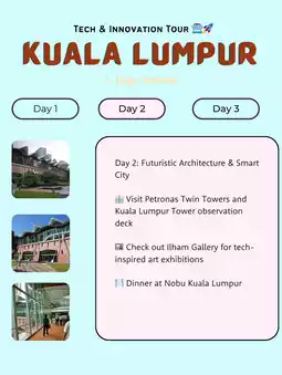 • 🏢 Visit Petronas Twin Towers and Kuala Lumpur Tower observation deck