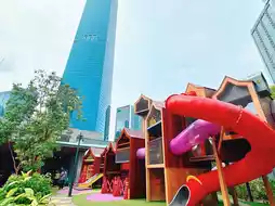 Right in the heart of Kuala Lumpur, high above the buzz of the city, there’s a playground that feels like a secret village in the sky. TRX City Park’s Play City isn’t your ordinary slide-and-swing spot — it’s designed like a modern kampung, with colourful playhouses, climbing nets, suspension bridges, and little lanes that spark imagination.
