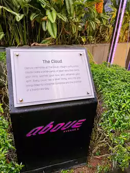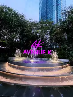 Perched above the bustling city, the rooftop at Avenue K offers a serene urban escape like no other. Surrounded by lush greenery, manicured gardens, and a charming water fountain, this hidden gem is a peaceful retreat from the chaos below. A whimsical cloud sculpture adds a dreamy touch, while cozy seating invites you to relax and unwind.