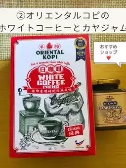 I bought white coffee sticks and jam from Oriental Kopi, a chain that always has a long line! The white coffee tasted just like the one I get locally🥰It was rich and delicious❣️I'm going to enjoy the jam as kaya toast!