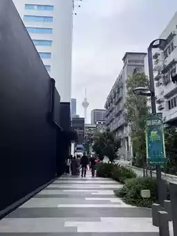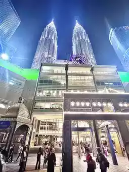 The walk from Pavilion to KLCC takes about 20 minutes. Along the way, you'll see city views, pedestrian bridges, and green streets, making it a great city stroll. You can even spot the Kuala Lumpur Tower from a distance. For a more relaxed stroll, take a Grab ride, which takes you there in less than 10 minutes. Across from KLCC, there's a captivating colorful water show at night. The interplay of lights and music is a sight to behold, making for a photo opp. Behind KLCC stands the famous Petronas Twin Towers, dazzlingly illuminated at night and a symbol of Kuala Lumpur.
