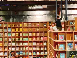 Here, books aren’t just lined up—they’re staged like art, inviting you to wander slowly, to pause, to get lost. The warm glow of the lights against the industrial walls makes reading feel poetic, almost cinematic.