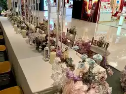 The ground floor of this fairly new luxury shopping mall comes alive with joyful bursts of colors, and pretty flowers, in this spring-inspired celebration. In this new wonderland, there are familiar characters such as the giant White Rabbit, reminiscent of the one in Alice in Wonderland, and also the Malayan Tiger, prowling quietly next to a photo-op bench. Every step would lead to a pleasant surprise, such as the mini exhibition on the official costumes and souvenirs from the Commonwealth Games, featuring floral batik shirt for gentlemen, and floral motif baju kurung for ladies. Impossible to evade is a central floral installation by Botier, a dining table lushly set with plentiful bouquets and pillar candles, evoking a rustic Mediterranean nostalgia. Stretching the boundaries of man-made installations imitating nature as art, Pavilion Bloom entices visitors with its visually nourishing stimulating aesthetics, and exciting thematics.