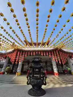 #kualalumpurguide Thean Hou Temple in Kuala Lumpur is one of Southeast Asia’s most impressive Chinese temples, blending modern architecture with traditional design. Dedicated to the sea goddess Mazu, it features ornate carvings, colorful murals, and grand prayer halls. The six-tiered structure offers panoramic views of the city skyline, especially beautiful at sunset. Visitors are greeted by rows of red lanterns, creating a festive atmosphere, especially during Chinese New Year and the Mid-Autumn Festival. The temple also showcases elements of Buddhism, Taoism, and Confucianism, making it a cultural and spiritual landmark. It’s a must-visit for its beauty, serenity, and cultural richness.