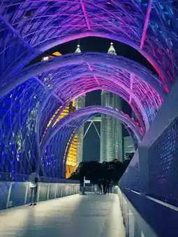 Visiting Saloma Bridge was such a magical experience! The bridge lit up beautifully with vibrant colors, creating a stunning backdrop against the Kuala Lumpur skyline. Walking across it felt modern yet cultural, as it connects Kampung Baru with the heart of the city. I loved how lively the atmosphere was, with people taking photos and enjoying the view of the iconic Petronas Twin Towers from the bridge. Truly a must-visit spot for anyone exploring KL at night!#travel