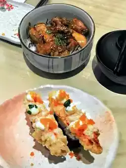 We ordered a variety of favorites — Hanasaki Ika Tempura, Unagi Jyu, Beef Teriyaki Don, and an Assorted Sushi Set — and enjoyed sampling each one together. Every bite was fresh, flavorful, and satisfying, making it a delightful way to wrap up our shopping day.