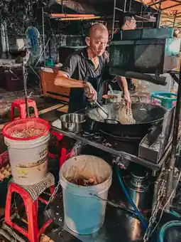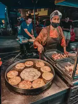 • Local favorites: satay, fried chicken, apam balik, grilled seafood.