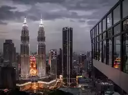 Catch the towers from the historical heart of Kuala Lumpur. The colonial buildings of Merdeka Square frame the sleek, modern towers for a striking contrast.