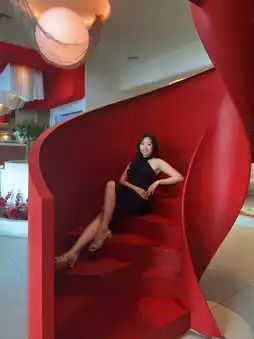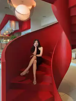 If you want those viral pics by the iconic red staircase, wear all black—it’s seriously chef’s kiss! The contrast is sooo good and you’ll look fire in every shot. 🔥
