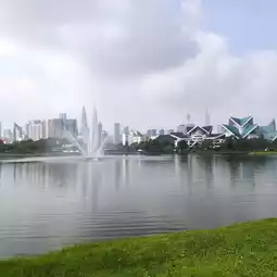A lake park with a free panoramic view of Kuala Lumpur's skyscrapers