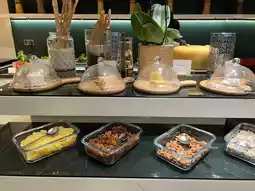 The selection includes hot dishes, finger foods, fresh fruits, and desserts—perfect for unwinding after a day of exploring the city. Whether you’re traveling for business or leisure, the Club Lounge experience adds a touch of luxury to your stay.