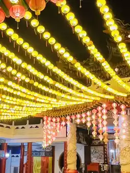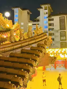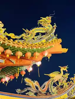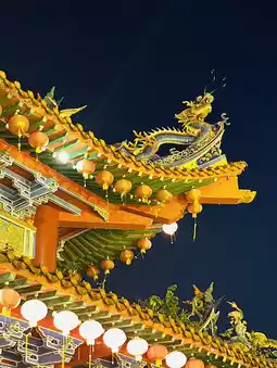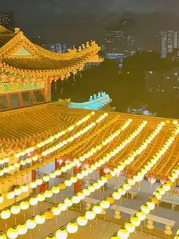 Watch the six-tiered temple become a living tapestry of color and devotion. Join locals in ancient rituals under the gaze of golden goddess statues, then witness the stunning cityscape view as sunset paints the sky behind the temple's dragon-adorned roofs.