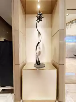 The ground floor entrance lobby of Four Seasons Hotel Kuala Lumpur is more than just an arrival point — it’s a visual prelude to luxury. Intricately designed decorations and sculptures fill the space with refined artistry. Bronze-toned sculptures, modern floral arrangements, and marble accents merge contemporary elegance with local flair. Each art piece tells a subtle story of culture and sophistication, setting the mood for an exceptional stay right from the first step inside. ✨
