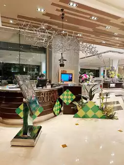 Immerse yourself in the vibrant Hari Raya spirit at InterContinental Kuala Lumpur, where the grand lobby transforms into a stunning cultural showcase. A traditional kampung house takes center stage, surrounded by woven ketupat, glimmering oil lamps, and intricate batik drapery. Warm yellow lighting bathes emerald greens and deep blues, while soft gamelan music fills the air, creating a serene yet joyful ambiance. Perfectly blending modern luxury with Malaysia’s rich festive heritage, this city-center gem invites guests to pause, admire, and celebrate culture in style. A must-visit for festive photos and unforgettable moments!