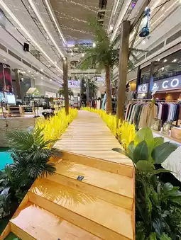 Step into a festive village charm at Avenue K this Hari Raya, where the mall transforms into a nostalgic kampung scene. A traditional wooden house, lush paddy fields, and rustic props evoke the serenity of rural Malaysia. Golden fairy lights twinkle overhead as Raya melodies fill the air, creating a warm, heartwarming atmosphere. Every corner—from woven baskets to vintage oil lamps—is Instagram-worthy. Locals and tourists alike gather for photos, festive shopping, and a genuine taste of balik kampung vibes, all in the heart of Kuala Lumpur.