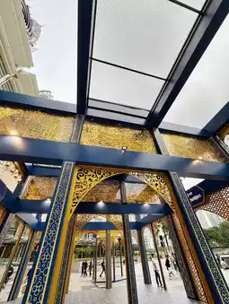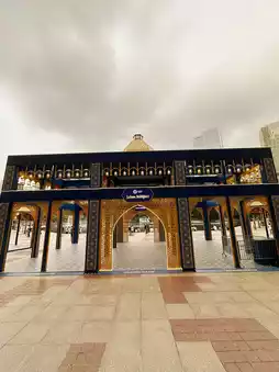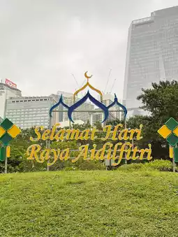 As dusk descends, the Petronas Twin Towers shimmer above a magical Hari Raya scene. At their base, golden domes, rich purple accents, and crescent moons transform the park into an elegant mosque-inspired garden. Twinkling lights reflect off manicured greenery, inviting visitors to stroll, snap festive photos, and soak in the city’s serene yet celebratory atmosphere. This perfect blend of modern skyline and traditional charm turns KLCC into a must-visit Raya destination, where every evening feels like a golden festival moment.