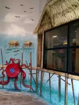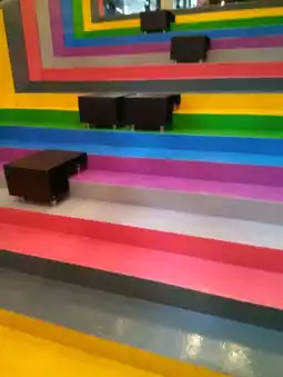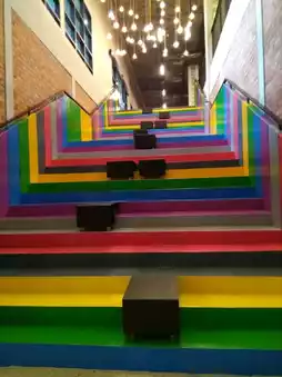 The LINC Mall masterfully integrates art, color, and nature to create a vibrant urban oasis. Its entrance features a striking facade adorned with colorful vertical strips, exuding a lively and modern appeal. Inside, visitors encounter an array of murals and creative installations—such as vivid jungle animal scenes, ocean-themed wall paintings (even transforming a fire hydrant into an octopus artwork)—that refresh and delight the senses. Across its multi-level spaces, hanging bulb decorations and a vibrant rainbow staircase offer not only resting areas but also perfect backdrops for photos. The mall also preserves lush, mature trees that enhance a tranquil and cozy atmosphere, seamlessly balancing industrial design with natural beauty.